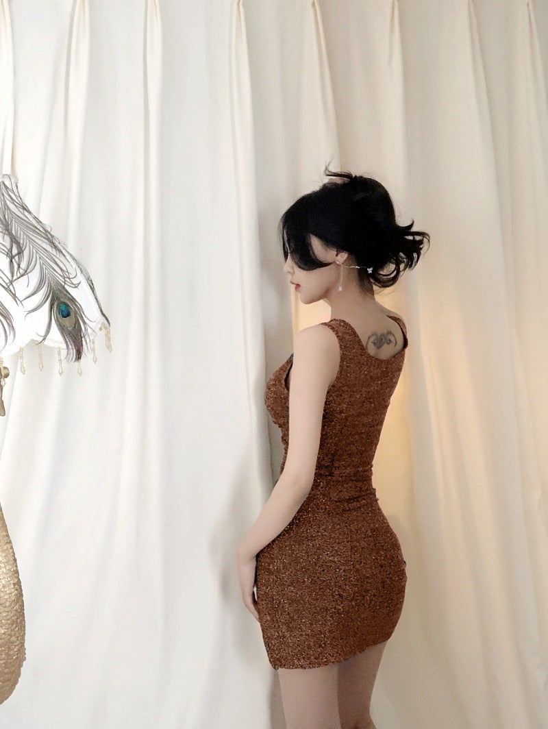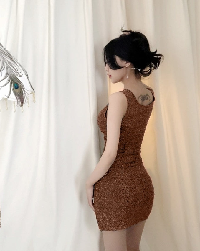 Get ready to own the night in this jaw-dropping sparkly black bodycon mini dress – the ultimate showstopper for parties, date nights, and girls' night out. Designed to flatter every curve, this sleeveless mini dress features a deep V-neckline that enhances your shape, a figure-hugging fit that sculpts your silhouette, and a daring side slit for that extra edge of sass. Made from a glittery stretch fabric, it shimmers under the light and gives you that luxe, high-glamour vibe you’ve been craving.