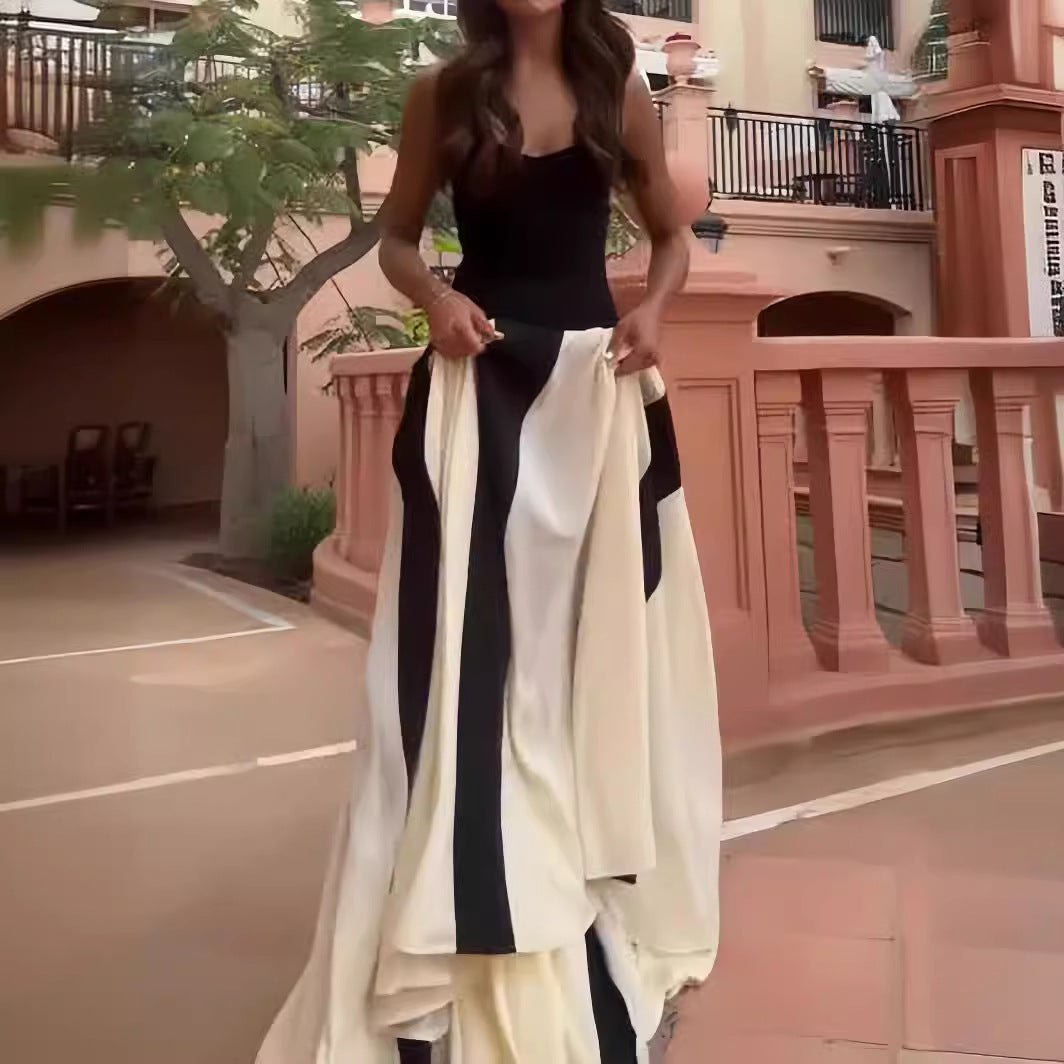 Summer New Fashion Color Contrast Stitching Cinched Waist Slim-fit Sling Dress