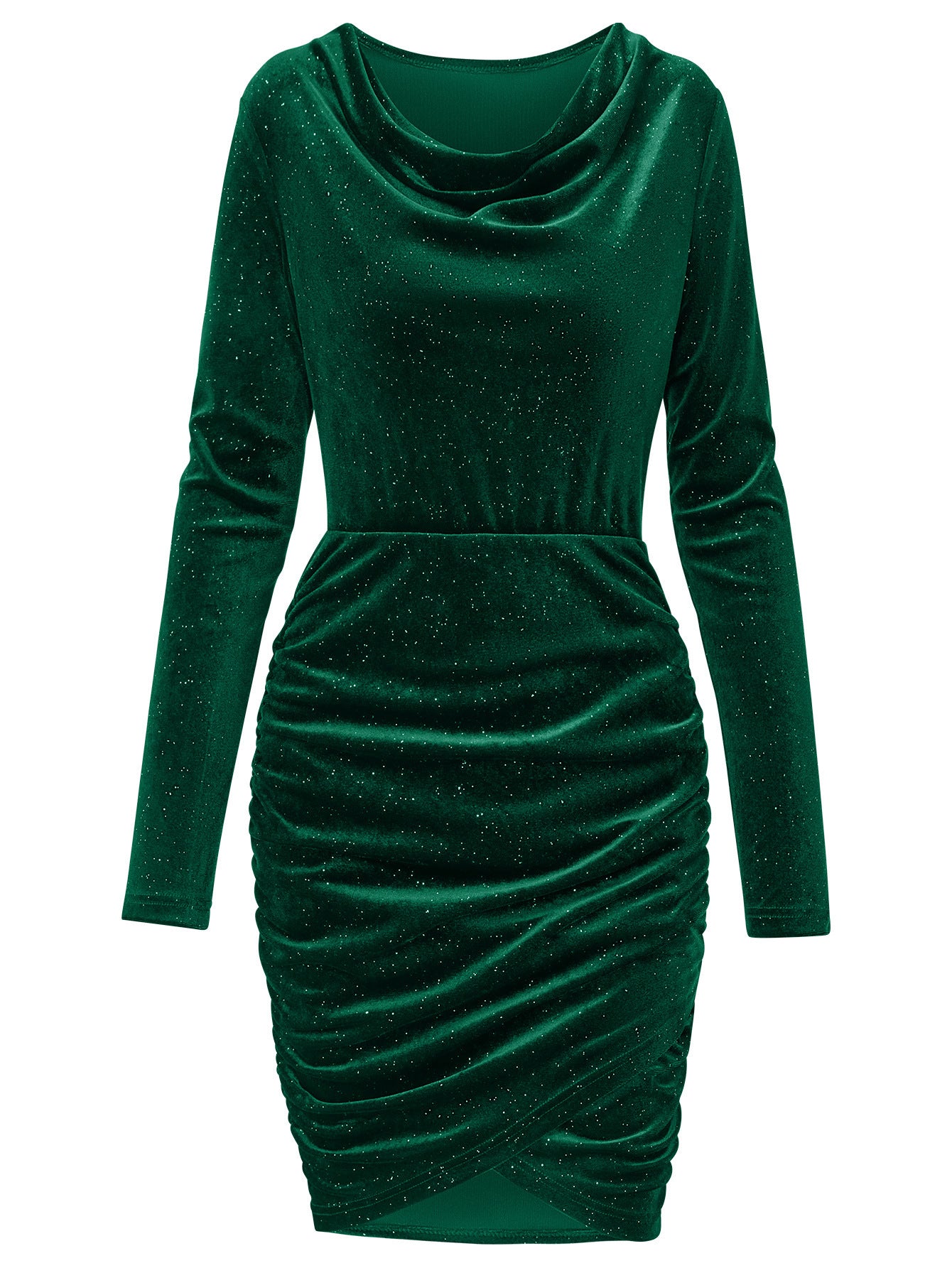 Swing Collar Long Sleeve Dusting Powder Velvet Dress
