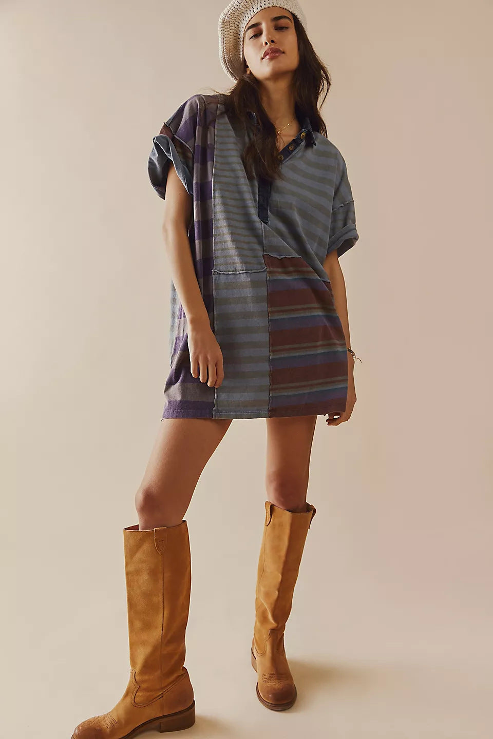 Women's Mid-sleeve Lapel Contrast Color Striped Loose Casual Dress