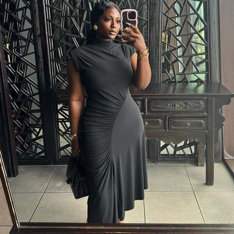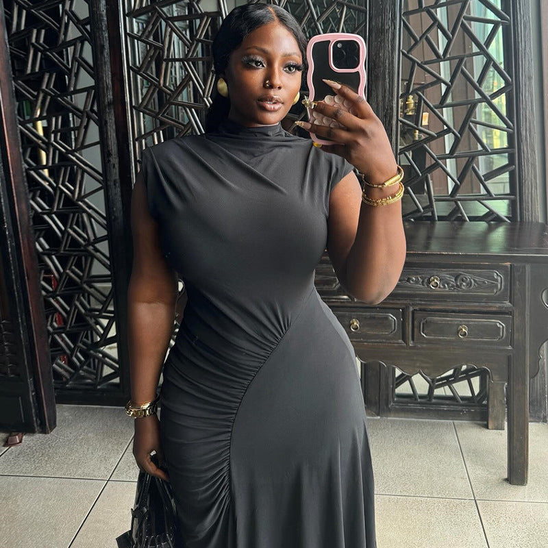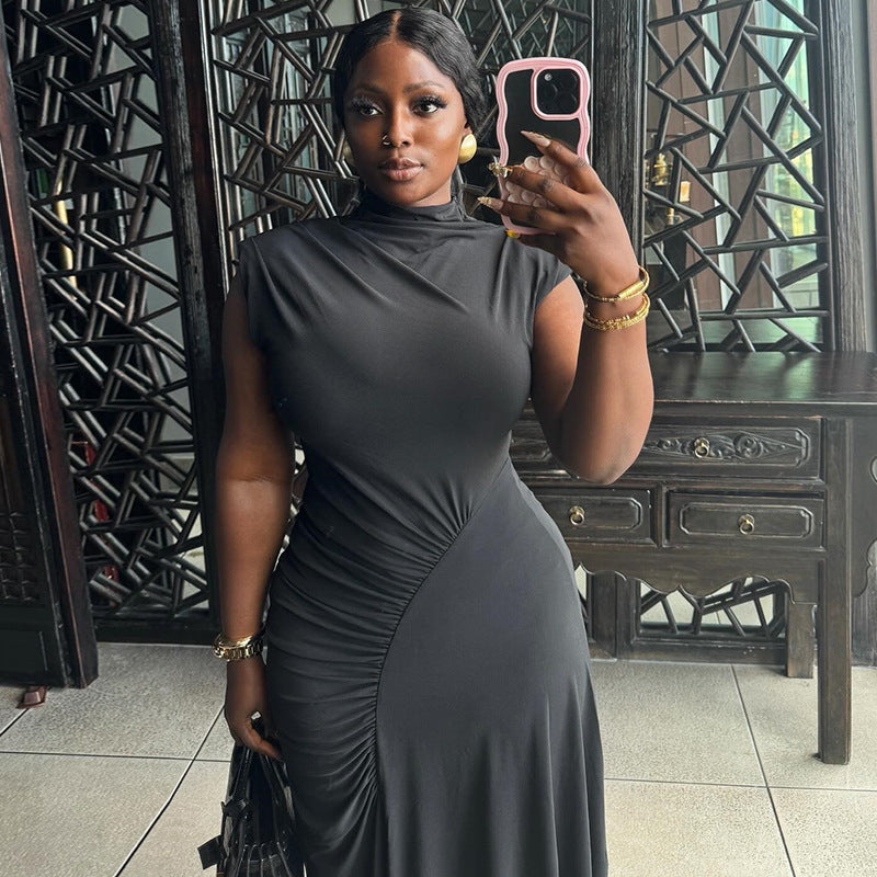 Women's Round Neck Pullover Sleeveless Irregular Solid Color Dress